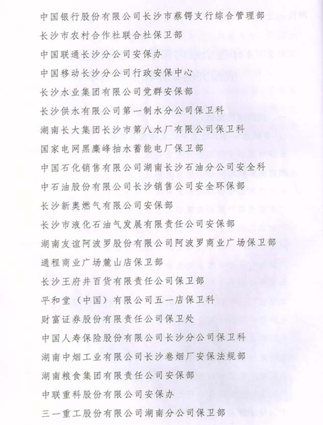 2014年度榮獲長沙市公安局安全保衛(wèi)工作成績突出集體榮譽(yù)獎勵